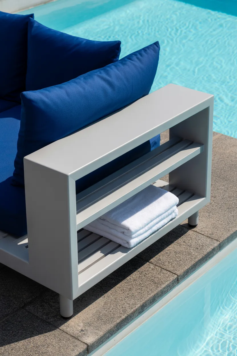 Poolside Storage benches combine seating and storage. They are perfect for multifunctional outdoor spaces.