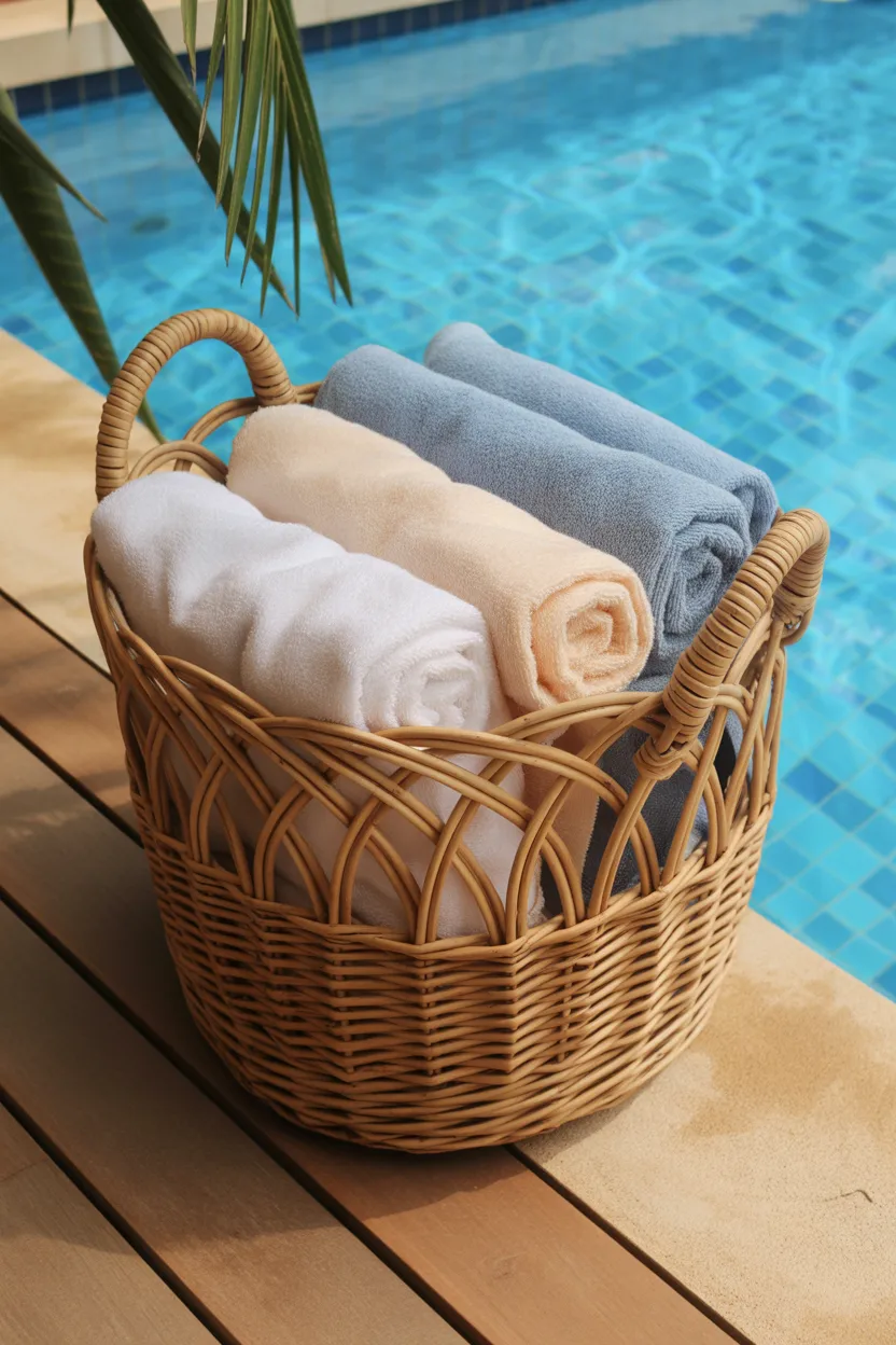 Outdoor Towel Storage baskets are simple and stylish. They are easy to move and perfect for casual setups.