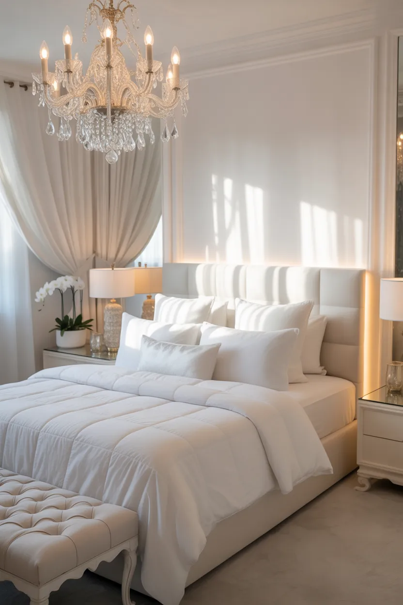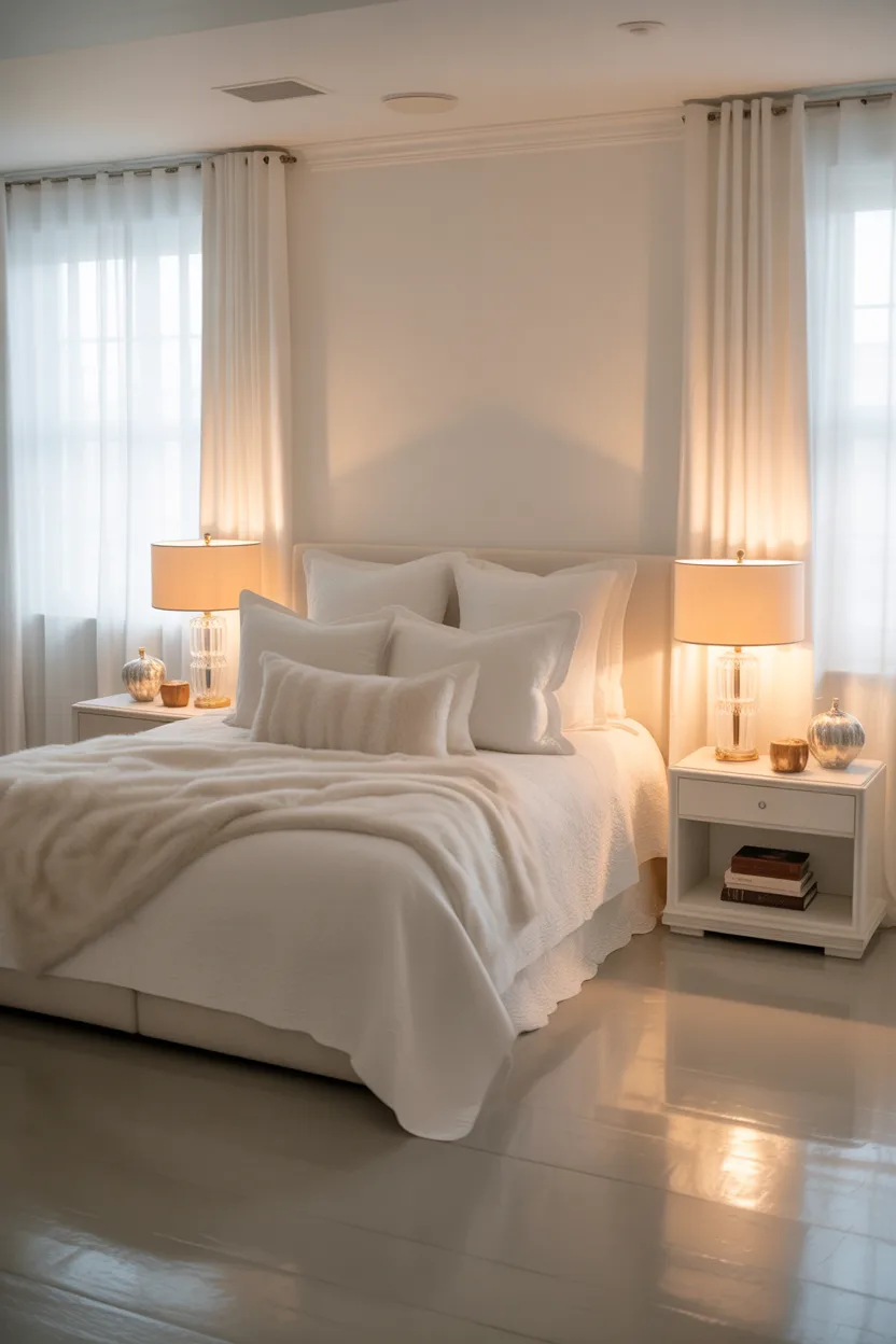Learning how to make a white bedroom feel cozy is all about layering warmth into simplicity. Whether you love a minimalist white bedroom, an elegant bedroom, or a luxury bedroom master, texture and lighting make all the difference.